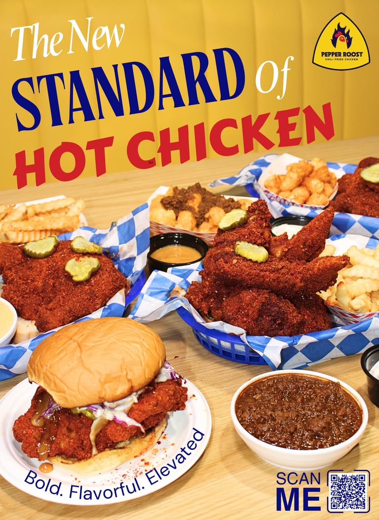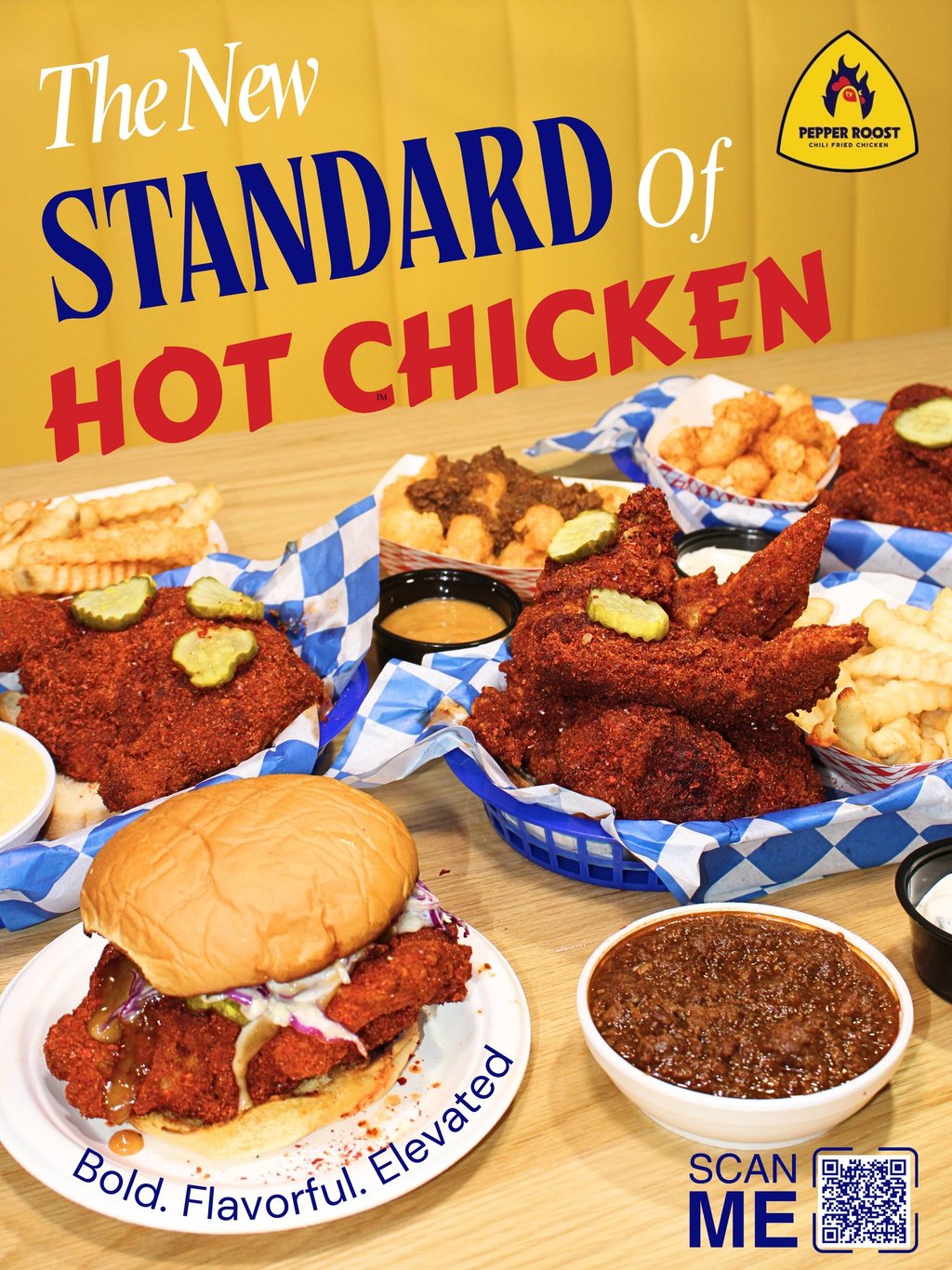 At Pepper Roost, we’re not just serving chicken—we’re redefining it. Our journey began with our chef traveling across America, tasting hot chicken from coast to coast. What he found? Most places nailed the heat but lacked bold seasoning. The chicken was often spicy and juicy but missing that deep, flavorful punch. That’s where we come in.